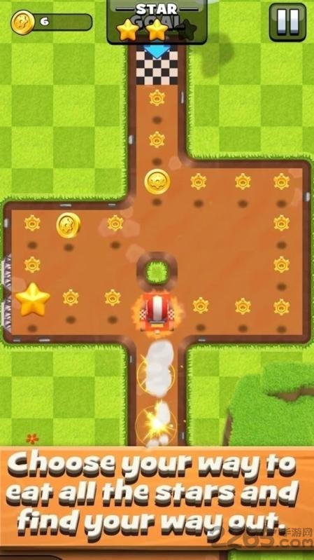 5、操作简单易上手,适合所有年龄段的玩家。只需操控小车避开障碍物,收集地图中的金币和星星,就能找到通关路径。